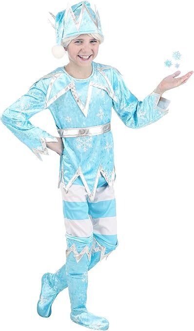 This costume includes a shimmering frosty blue jumpsuit and a matching hood, perfectly capturing Jack Frost’s magical essence. Every detail—from the cool tones to the icy shimmer—makes your little one look like they’ve stepped straight out of a winter fairytale.