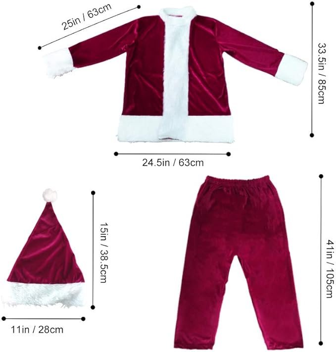 Durable & Easy to Maintain: Crafted with reinforced stitching and breathable fabric, this Santa suit is built to last for years of festive fun. It’s machine washable, ensuring easy care while keeping its vibrant red color and fluffy white accents.