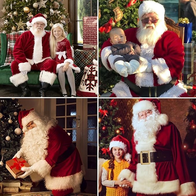 Premium Velvet Fabric: Made from a soft, warm polyester blend with rich velvet and plush white trim, this professional Santa costume offers lasting comfort and a luxurious feel — perfect for long hours of wear during parades, photos, or parties.