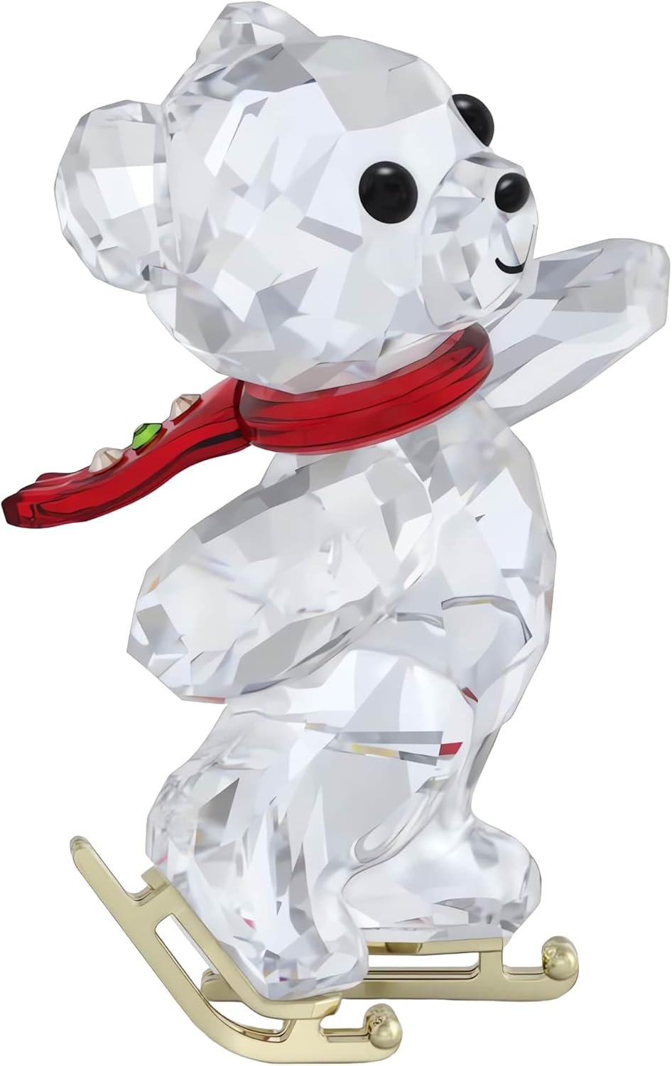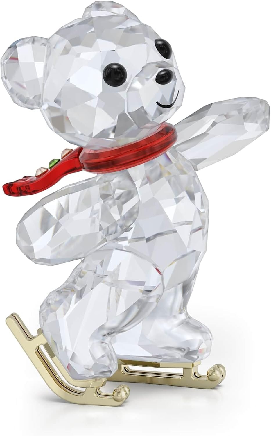 Meticulously crafted with 439 precision-cut crystal facets, this adorable figurine sparkles from every angle, reflecting light with unmatched brilliance. Kris Bear’s skates are rendered in champagne gold-tone metal, adding warmth and contrast to the crystal’s clarity. A bright red scarf, adorned with delicate flatback crystals, adds a festive touch and a pop of color that enhances its cheerful personality.