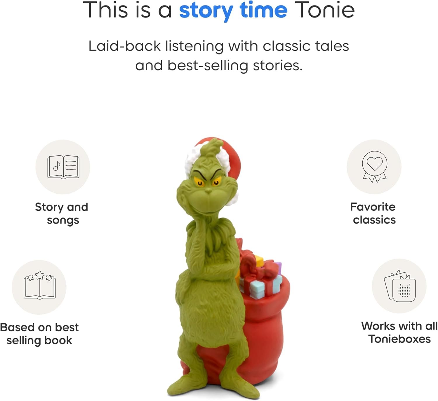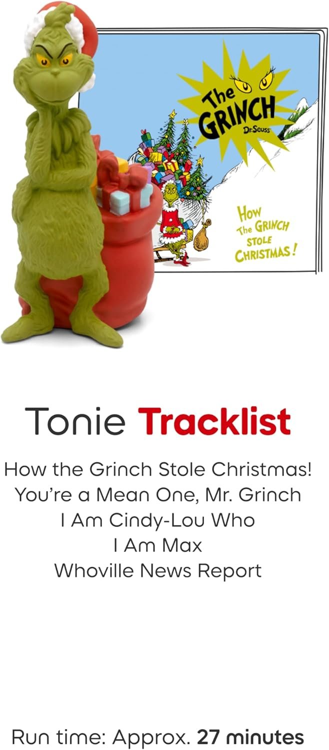Join the classic holiday tale with the Tonies The Grinch Audio Figurine, a heartwarming story that teaches kids about gratitude, kindness, empathy, and the true spirit of Christmas.
