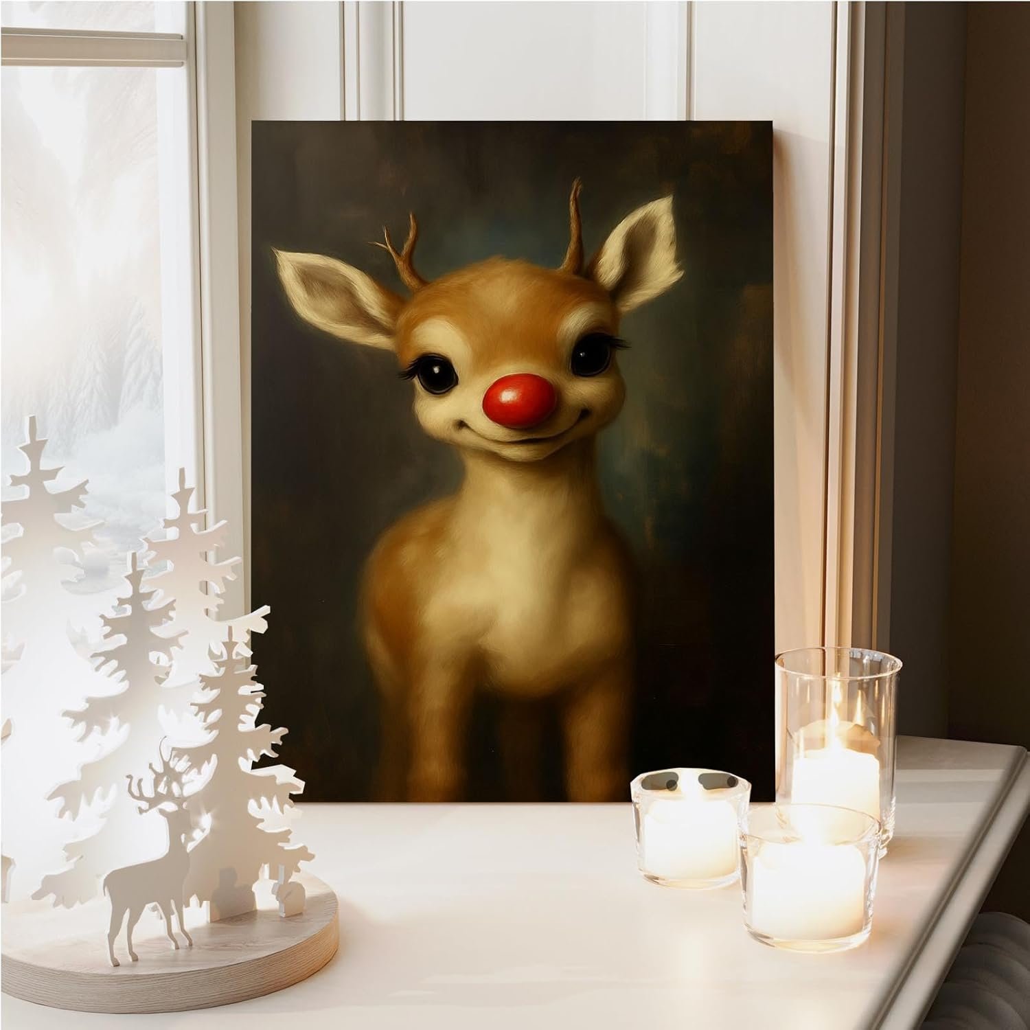 Transform your home into a winter wonderland with the Vjfkskuey Rudolph Reindeer Christmas Poster — a celebration of love, joy, and the timeless magic of Christmas.